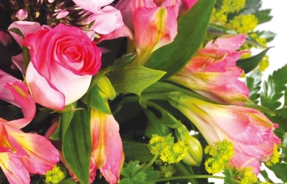 Détails du bouquet : pivoines roses (ou tête d’hortensia ou roses rose gros boutons selon la saison) d’alstroemerias roses, de pittosporum, feuillages de fleur d’anis (ou solidago ou mimosas), collerette de fougère ( Fleurs variables selon les saisons et la disponibilité en magasin tout en gardant l’esprit la forme et les couleurs)( Réf. Florale : 1208 – Eclosion) Visuel non contractuel, visuel correspondant à la formule Meilleur Compromis