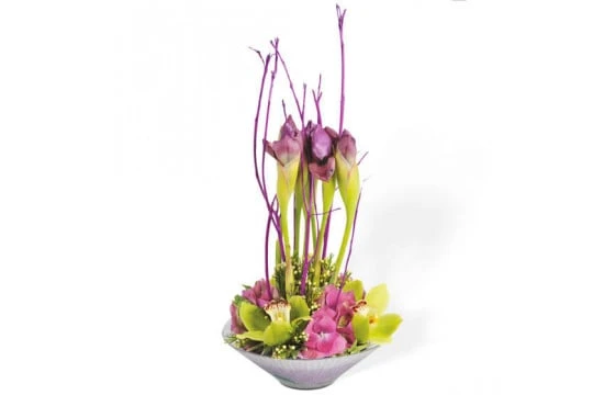 Une coupelle de fleurs à offrir à une belle dame d’apparence extérieure magnifique, mais encore plus admirable d’esprit. Cette composition sera le reflet de son âme. On dit que dans la mythologie grecque, l’iris était porteur de belles nouvelles et très prisé. La couleur violette de l’iris symbolise plus que le simple bonheur d’être ensemble. Elle transmet un sentiment plus fort comme un coup de foudre amoureux ou amical. Pour une invitation ou en remerciement pour une aide, cette composition sera très appréciée par celle qui la recevra.